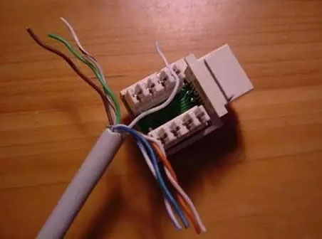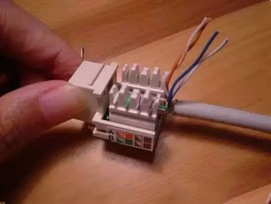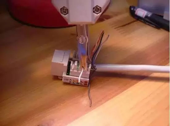3、將全部的線都壓進(jìn)各槽位后,用工具壓住模塊和線,用力壓下去,將線卡在模塊里面,并把多余的先頭剪掉。